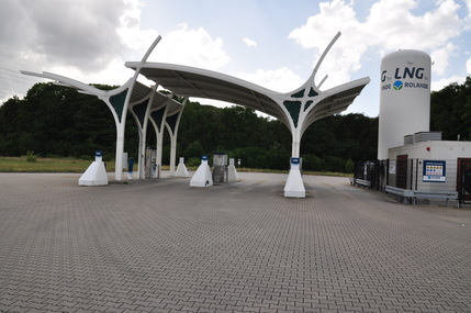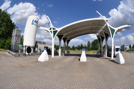 Methaan bevat per liter twee keer zoveel waterstof als waterstof. 1 liter CH4 bevat 4 haatjes. 1 liter H2 bevat twee haatjes. Je kan dus beter met methaan werken dan met waterstof. Op de plaatjes hieronder zie je een modern methaan pompstation voor auto's. Het station is aangesloten op een aardgas transport leiding en comprimeert het aardgas tot hoge druk en uiteindelijk tot vloeibaar aaardgas (LNG, Liquified Natural Gas) dat in de grote tank bewaard wordt. Vrachtwagens, taxibussen en veel personenwagens van de gemeente komen er tanken. Het station hoeft nooit apart bevoorraad te worden. Het zuigt de aardgas "uit de grond".